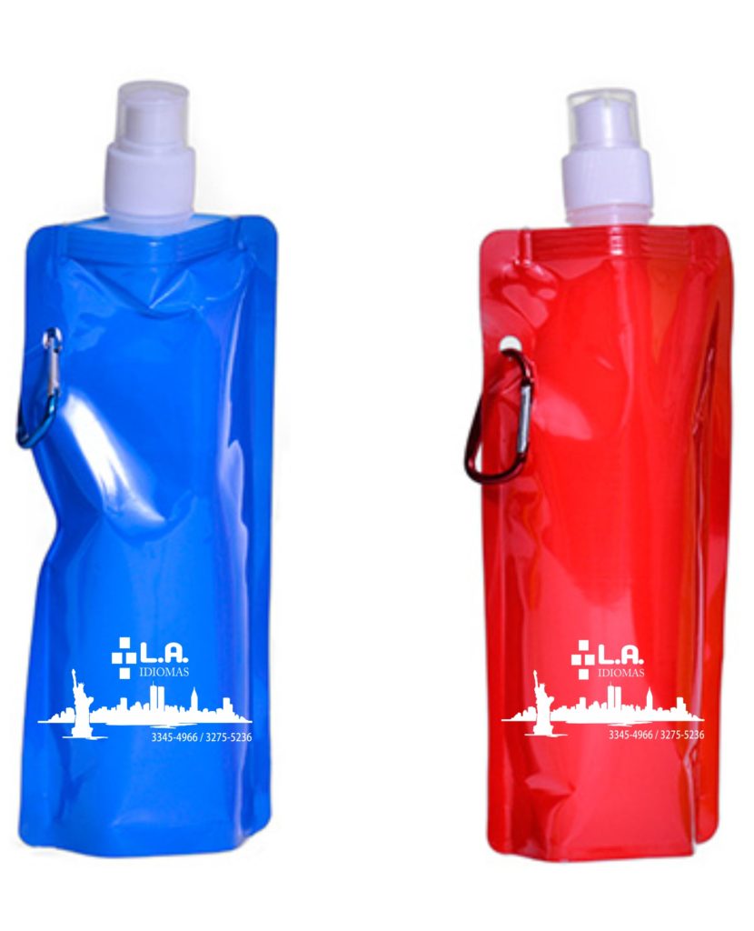Squeeze de alumínio com tampa plástica de bico, capacidade para 600 ml. Embalagem, caixinha branca.